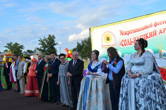 Пуд соли одолеем вместе! 21 августа 2015 года гости X Межрегионального фестиваля «Соль-Илецкий арбуз» стали участниками важного исторического события Соль-Илецкого района и Оренбуржья в целом. В рамках фестиваля состоялось установление нового национального рекорда по массовому поеданию пуда соли. В первый день на стадионе «Юность» зрители сделали первый шаг в этом направлении. Для проведения церемонии установления рекорда на сцену были приглашены Губернатор Оренбургской области Юрий Александрович Берг, гость фестиваля, путешественник с мировым именем Федор Филиппович Конюхов, председатель Законодательного собрания Оренбургской области Игорь Николаевич Сухарев и Глава Соль-Илецкого района Юрий Георгиевич Вдовкин. Официальные лица вместе с сопровождавшими их персонажами, историческими личностями, оставившими свой след в истории Оренбуржья – Царицы Екатерина Вторая, Елизавета Петровна, Первый Губернатор Оренбургской Губернии Иван Иванович Неплюев. встретила всех, как и подобает, хлебом-солью хозяйка соляных копей Соленушка В это время волонтеры на подносах разнесли участникам по 2 грамма соли в пакетиках с логотипом официального свидетельства о признании Соль-Илецка – арбузной столицей России - фестиваль-то арбузный! По команде главного арбитра Российского комитета регистрации рекордов Вадимом Горюновым вскрыты пакетики и дружно всем стадионом (2000 человек) было съедено 4 килограмма соли. Триколорный фейерверк возвестил о завершении первого дня фестиваля. На следующий день, 22 августа, на территории солёных озёр у всех посетителей появился уникальный шанс стать участником яркого события – церемонии регистрации рекорда, достойного книги Гиннеса – поедание Пуда Соли. Каждый из 6000 участников не только получил из рук волонтеров 2 грамма самой лучшей в мире соли - илецкой соли, но и стал обладателем сертификата участника удивительного, единственного в своём роде, исторического события. |
