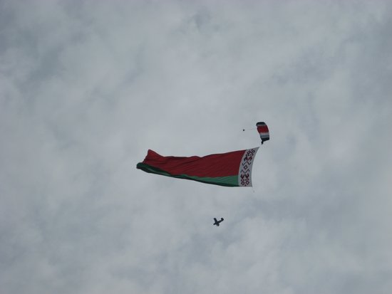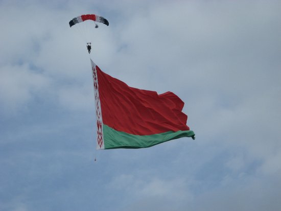 Самый большой флаг 1 сентября 2013 года в городе Быхов Могилёвской области, Республика Беларусь, на Дне белорусской письменности, во время показательных выступлений парашютистов Могилевского аэроклуба, мастер спорта международного класса Павел Петрович Новицкий, прыгнув с парашютом из самолёта Ан-2 с высоты 1,8 км., развернул полотнище белорусского флага длиной 37 м. и шириной 18,5 м. Общая площадь флага - 684,5 кв.м. Парашютист приземлился под бурные овации многочисленных зрителей. Рекорд зафиксировала экспертная комиссия в составе: - Александр Бендиков – представитель Российского комитета по регистрации рекордов планеты в Республике Беларусь.