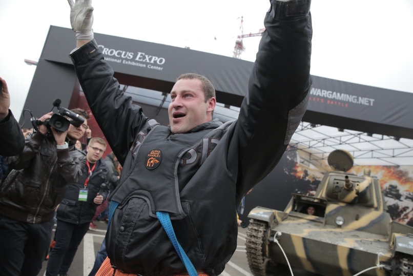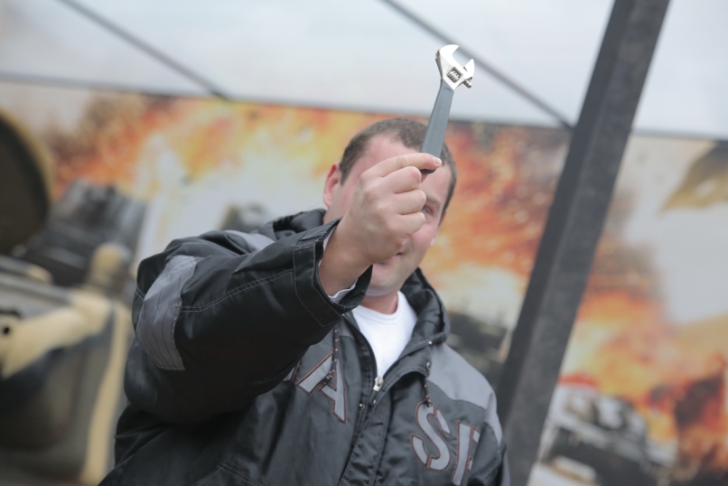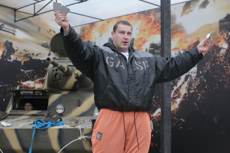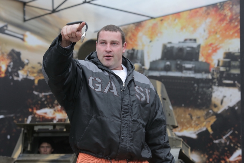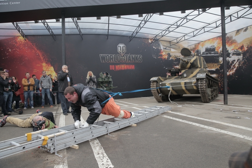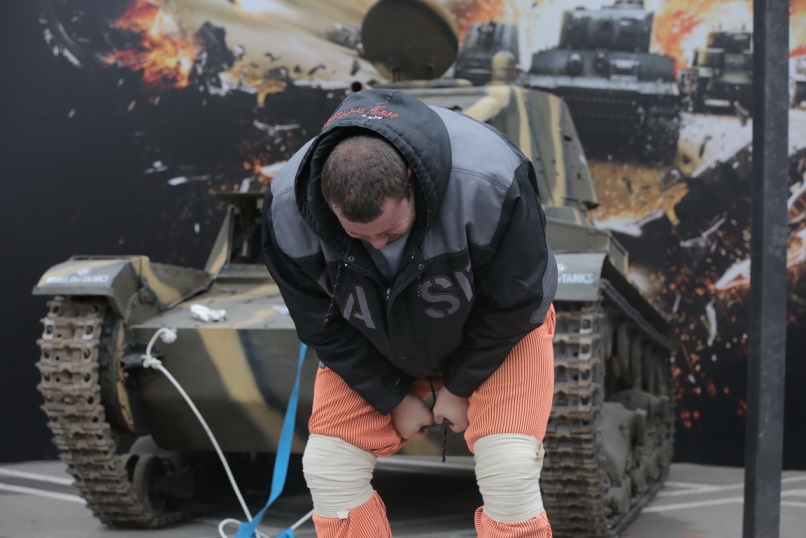 Человек против танка 4-го октября 2013-го года на площадке МВЦ «Крокус Экспо» нами было зарегистрировано новое мировое достижение в номинации «Страгивание с места тяжелой военной техники – танка «Т-26». Автор рекордного достижения: белорусский пауэрлифтер Кирилл Шимко – возраст – 35 лет, вес 130 кг. Технические характеристики танка «Т-26»: Масса - 8116 кг, длина - 4620 см, высота - 2190 см, ширина - 2440 см. Расстояние, на которое атлет протащил танк «Т-26» при помощи собственной физической силы без каких-либо технических приспособлений: 5 метров 26 сантиметров. Информация о данном достижении войдет в Единый Международный Реестр Российского комитета по регистрации рекордов планеты. |