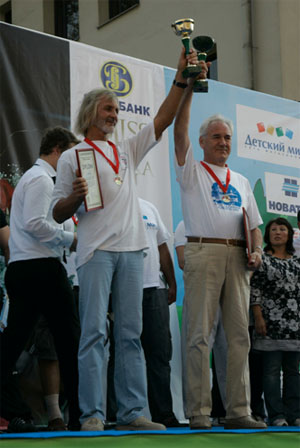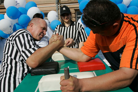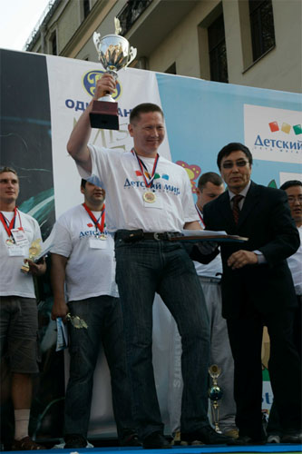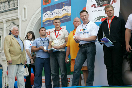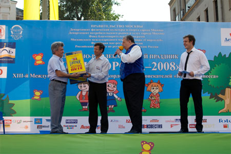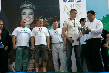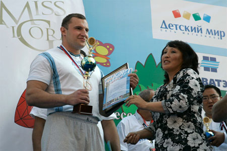 СПОРТИВНО-РАЗВЛЕКАТЕЛЬНЫЙ ПРАЗДНИК "ДЕНЬ ГОРОДА-2008" 7 сентября 2008 года на Театральном проезде проходил Спортивно-развлекательный праздник "ДЕНЬ ГОРОДА-2008". Цель проведения праздника - привлечь внимание общественности к проблемам развития спорта и формирования здорового образа жизни, укрепления здоровья, развития физических, морально-волевых и интеллектуальных способностей человека с целью гармоничного формирования его личности, пропаганда спорта, демонстрация отдельных спортивных достижений. Крупнейшим событием праздника стал XIII-й Международный Фестиваль рекордсменов "Книги рекордов Гиннеса" и "Книги рекордов Планеты", программа которого включала выступления и конкурсы не только обладателей уникальных рекордов, но и новых соискателей среди спортивных семей, стремящихся стать рекордсменами. Помимо показательных выступлений рекордсменами были установлены несколько новых рекордов, которые они посвятили городу Москве. 35-летний майор милиции из г. Дзержинска Нижегородской области Евгений Кузнецов сумел без помощи рук согнуть шесть двухметровых железных прутьев, один конец которых упирался в угол сцены,.а другой в горло рекордсмена. До этого Евгению покорялись только четыре таких металлических прута. Свои очередные рекорды установили баскетбольная семья Рзаевых из подмосковного города Малаховка и уникальный мастер оригинального жонглирования футбольным мячем Виктор Царев из г. Хабаровска. Как всегда никого не оставило равнодушным выступление "Факира Азии" Авара Свами, который помимо исполнения других уникальных трюков сумел заглотить в горло 40-сантиметровое вращающееся сверло электродрели. В рамках Спортивного праздника прошел Второй Открытый чемпионат России по мас-рестлингу. Соревнования проводились по действующим правилам Всероссийской федерации мас-рестлинга. Шестнадцать самых сильных участников собственным весом от 110 до 160 кг разыграли призовой фонд в десять тысяч долларов США. Если в России этот вид спорта развивается несколько лет, то в Якутии первое упоминание о борьбе на палках было найдено свыше трехсот лет назад. Поэтому не удивительно, что победителем чемпионата стал спортсмен из Республики Саха (Якутия) Юрий Протопопов, 26-летний спасатель МЧС. Серебро досталось Владимиру Чичерину (г. Владимир). Как вид спорта, мас-рестлинг привлекательный тем, что в нем могут раскрывать свои таланты спортсмены из других видов силовых единоборств. Москвичи с большим интересом и восторгом наблюдали за ходом соревнований. Украшением праздника "ДЕНЬ ГОРОДА-2008" стала церемония награждения победительниц Второго международного конкурса красоты "Miss ALGORA". Как и год, назад победительницей безоговорочно стала Ирина Журавская (Украина). Весной этого года Ирина завоевала титул "Мисс Украина" и сейчас вместе с победительницами национальных конкурсов других стран готовится к участию в конкурсе "Мисс Мира", который будет проводиться в декабре в ЮАР. Второе место заняла Анна Пославская из Херсонской области. "Miss ALGORA" отличается от других конкурсов красоты тем, что здесь главным образом оценивается умение участниц носить бриллианты и другие дорогие украшения. Организатор конкурса Анатолий Гордеев является автором уникальной технологии огранки алмазов. Впервые в мире ему удалось сделать огранку алмаза 469-ю гранями, вме